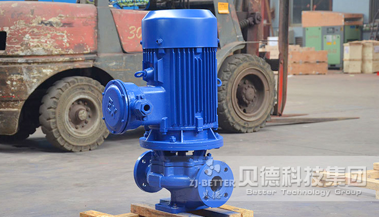 ①泵為立式結(jié)構(gòu),進(jìn)出口口徑相同,且位于同一中心線上,可象閥門(mén)一樣安裝在管路之中,外形緊湊美觀,占地面積小,建筑投入低,如加上防護(hù)罩則可置于戶外使用。