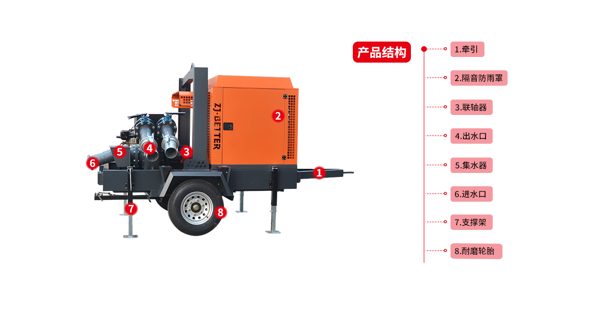 2、自吸時間短,出水流量大,機(jī)動性強(qiáng),能適應(yīng)各種氣候環(huán)境。